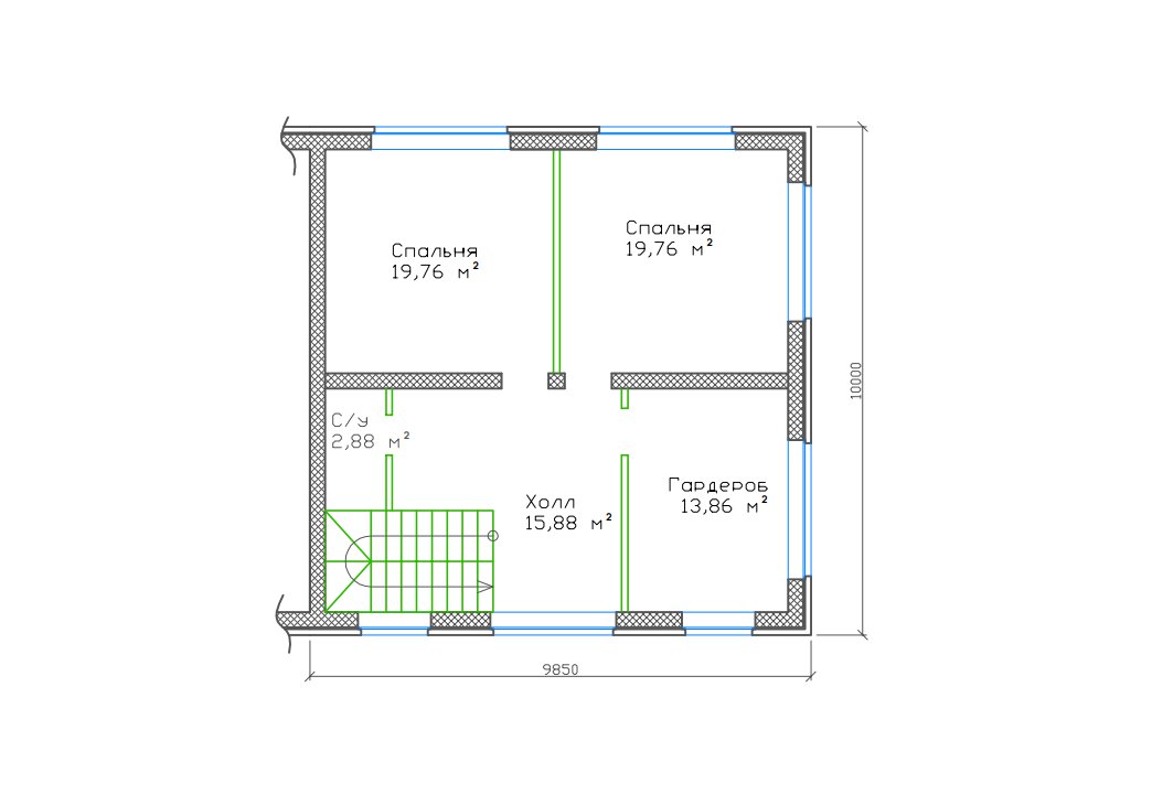 | 2 этаж | холл, с/у, 3 спальни |