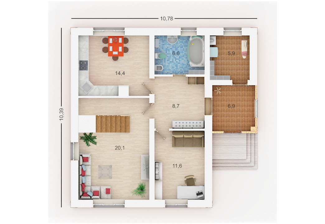 10,39 х 10,78 м