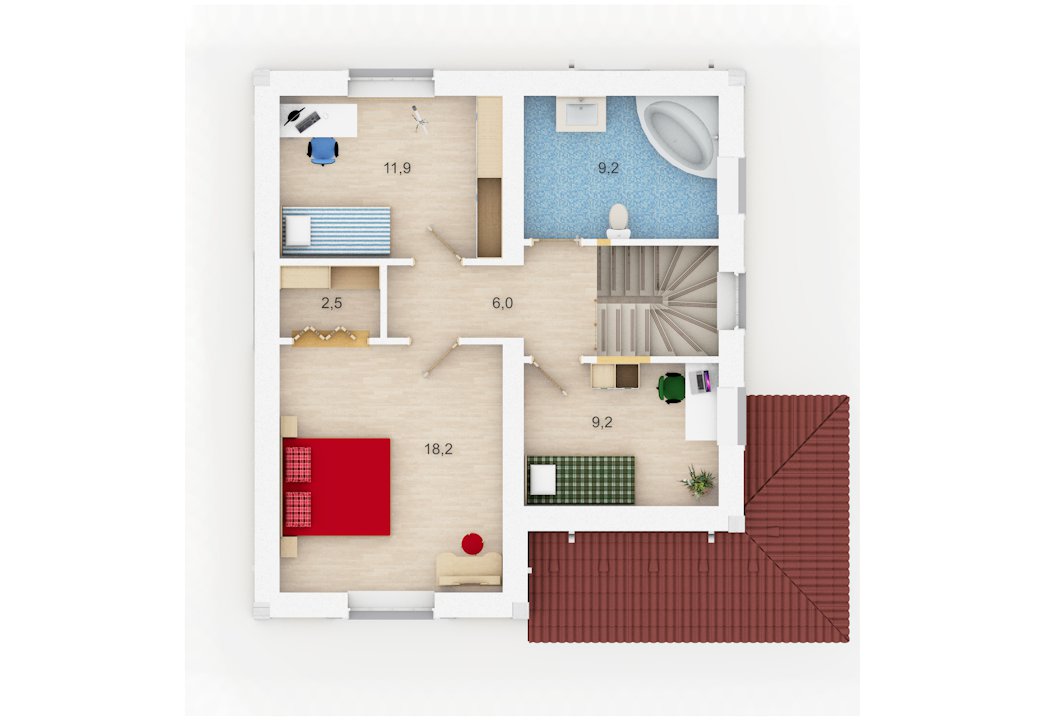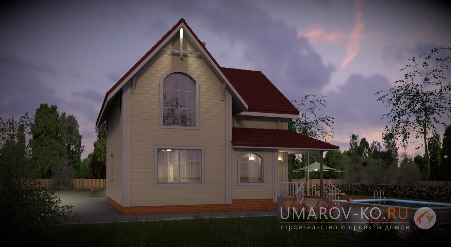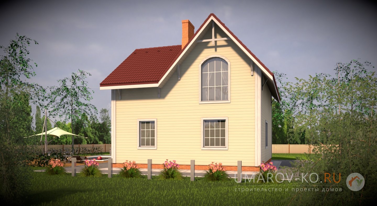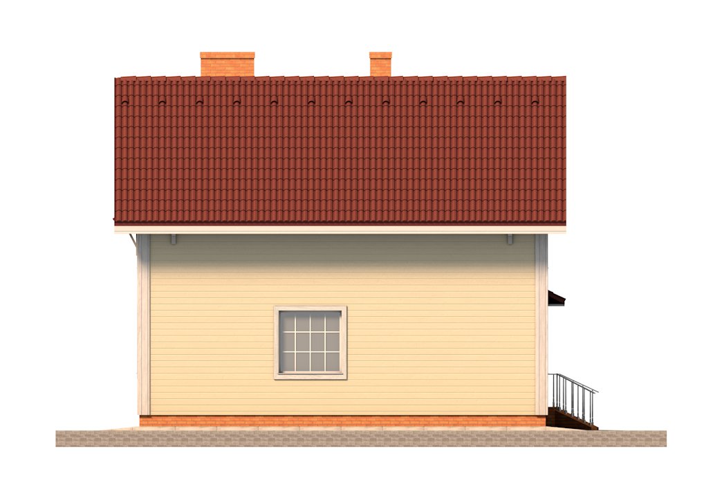 «Теремок без облицовки» - небольшой симпатичный дом обладает всем необходимым для комфортного проживания семьи из 3-5 человек. Удачное архитектурное решение главных фасадов делает дом на вид "дорогим", при этом сохраняя бюджетность строительства. Отдельные гардеробные на обоих этажах безусловно добавят удобства в проживании. В проекте сразу заложен дымоход под камин. Проект выполнен на основе дома «Теремок» с увеличением толщины несущих стен и из расчёта отделки фасадов сайдингом, штукатуркой или под покраску.